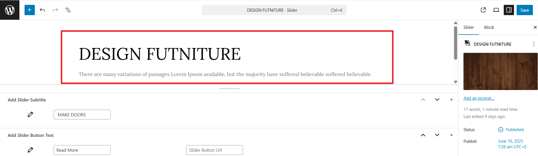 Select slider Section Settings from Go to Appearance then select Customize and then