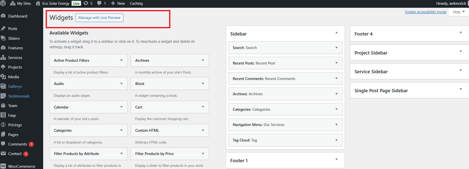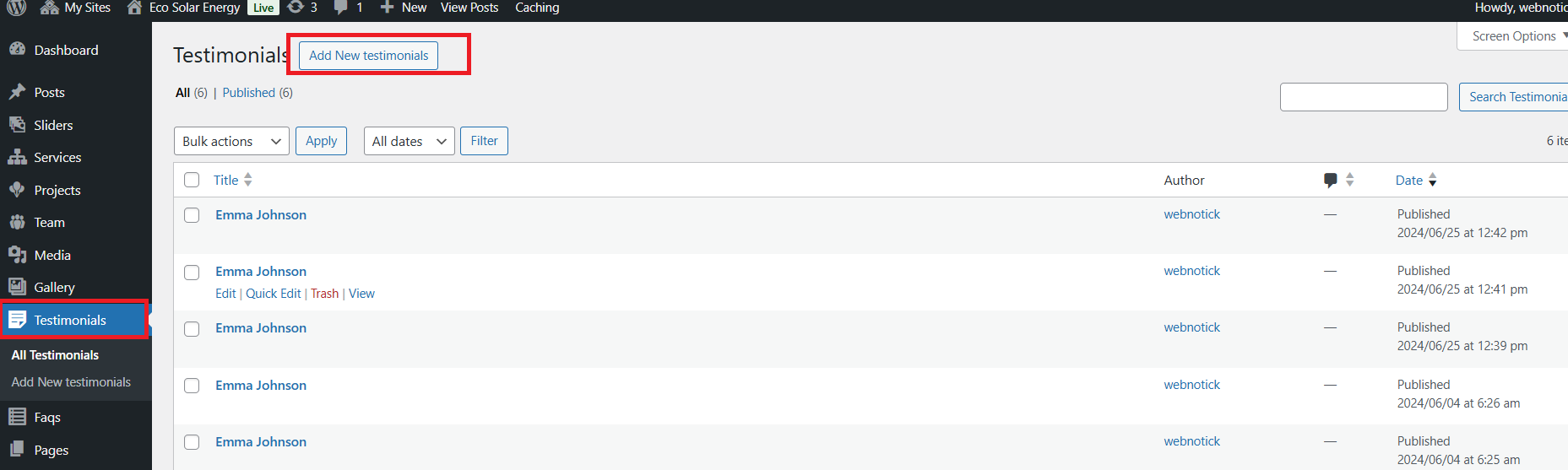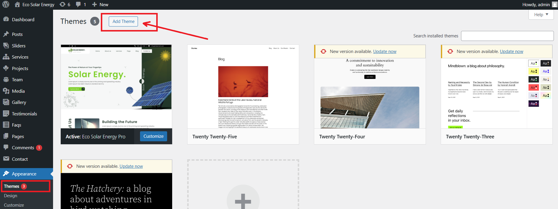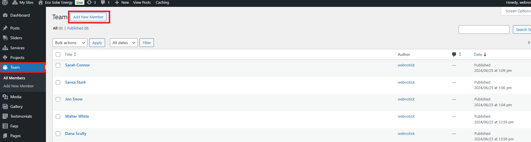 5. If you are not able to see the posttypes then you have to manually active the "Eco Solar Energy Posttypes" by going in to the plugins option.