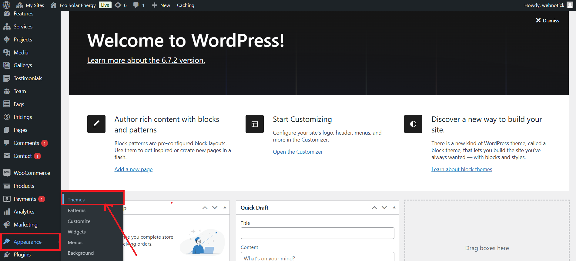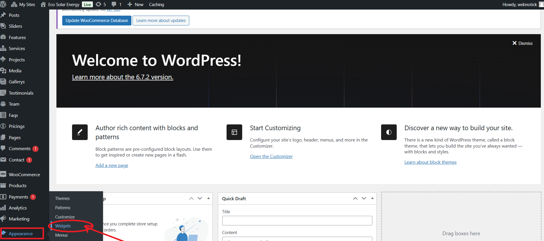 1. Click Dashbord Appereance