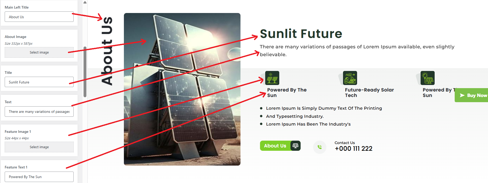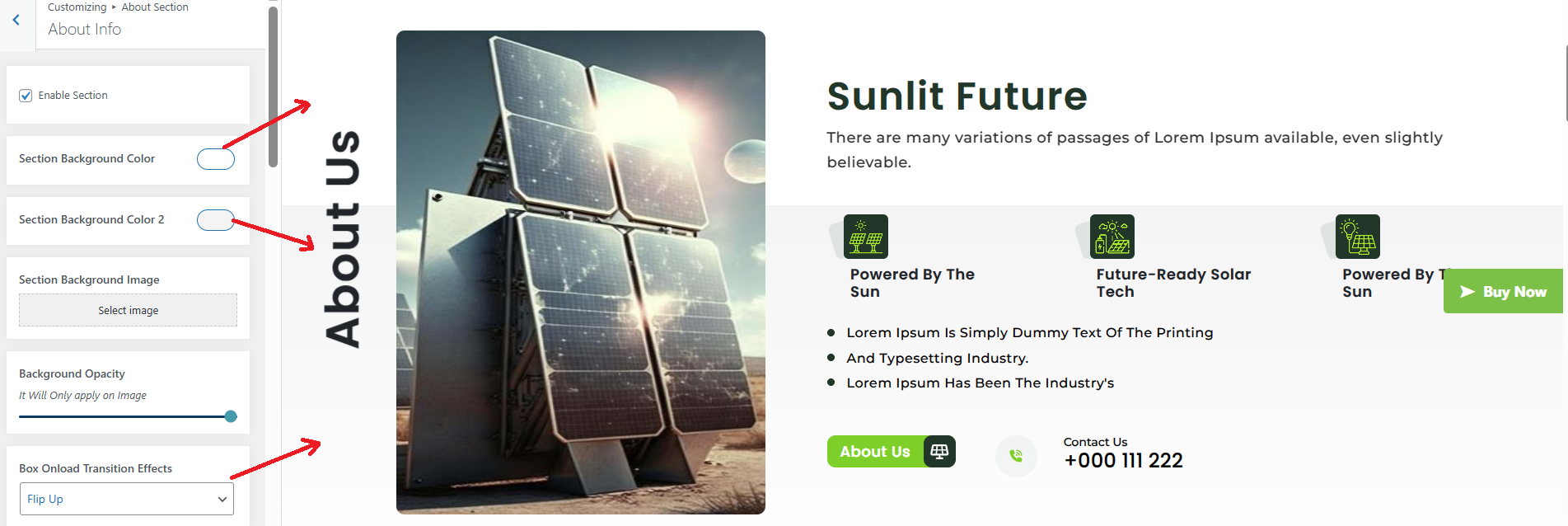 The following sections are included in the About Us Section customization: