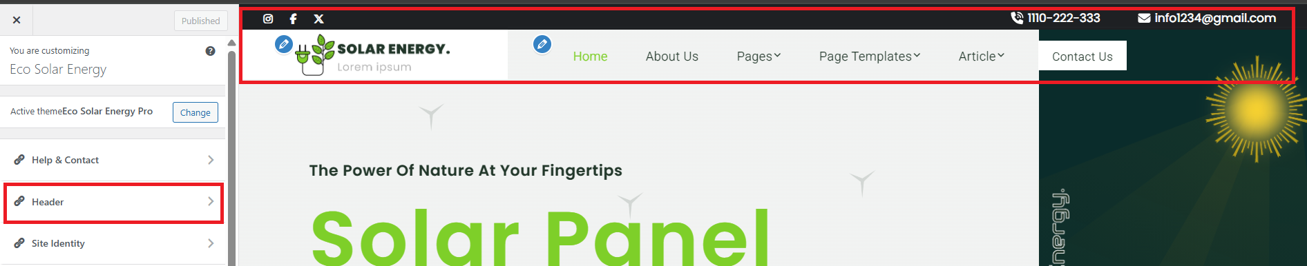 Select Header Section Settings from Go to Appearance then select Customize and then