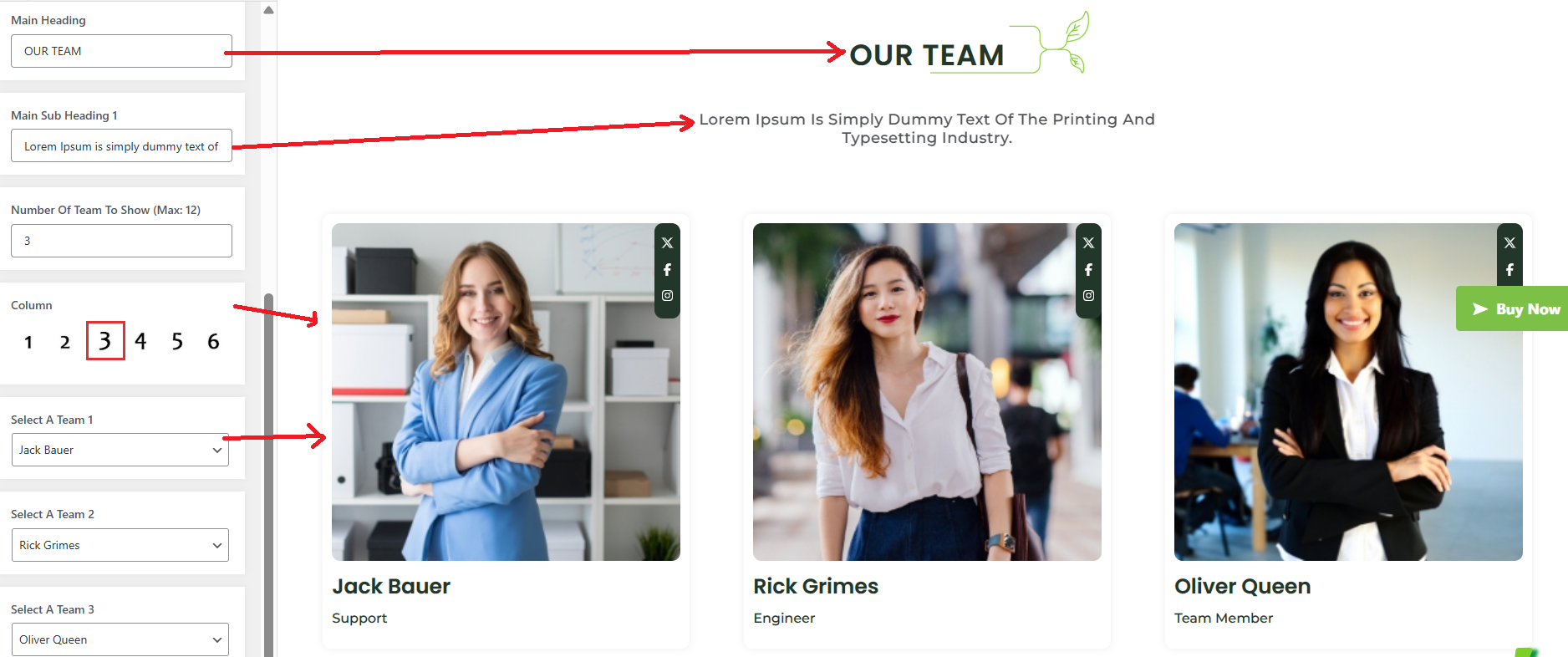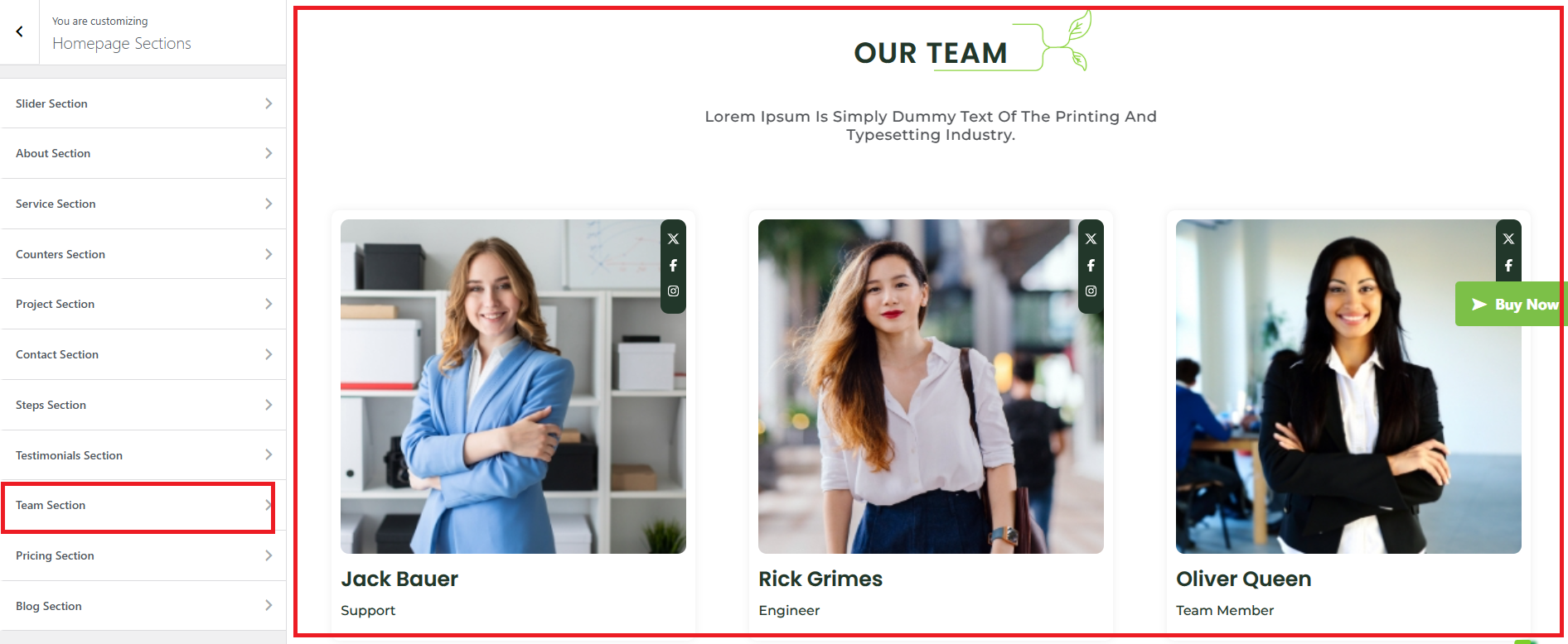 Team Section under