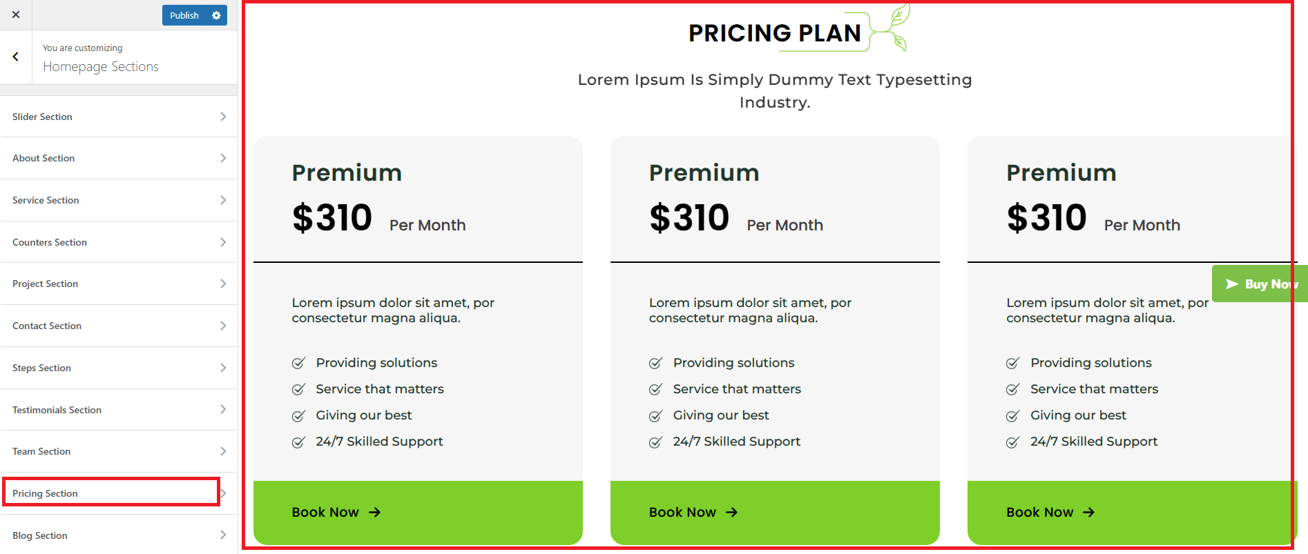 Pricing Section under