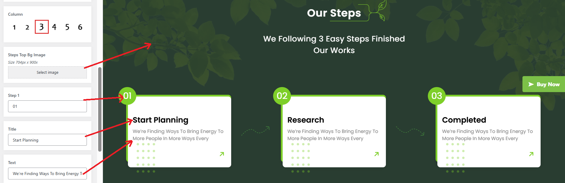 The following sections are included in the Our Step Section customization: