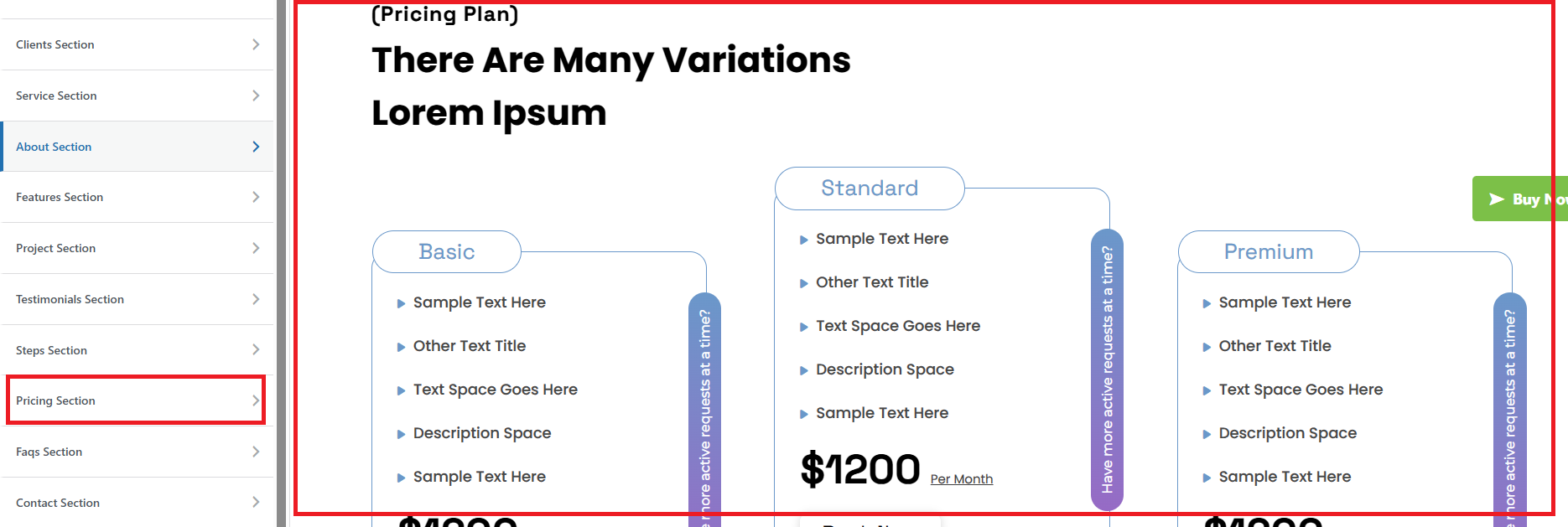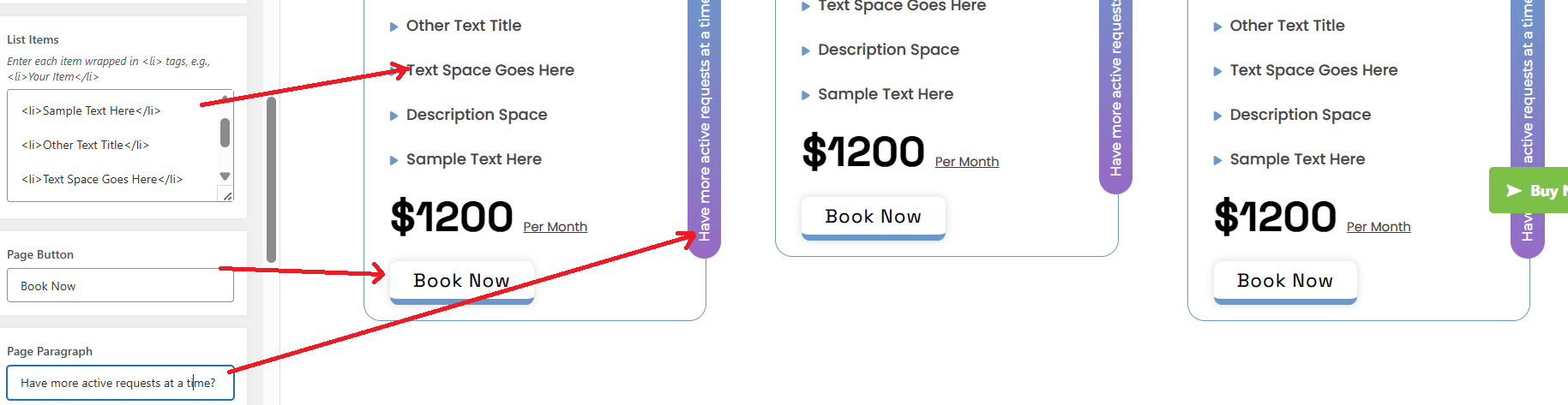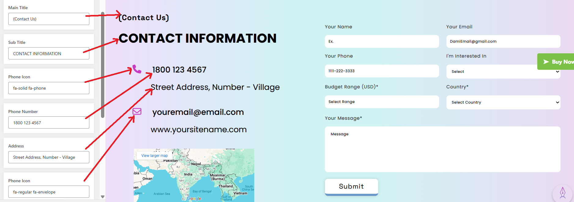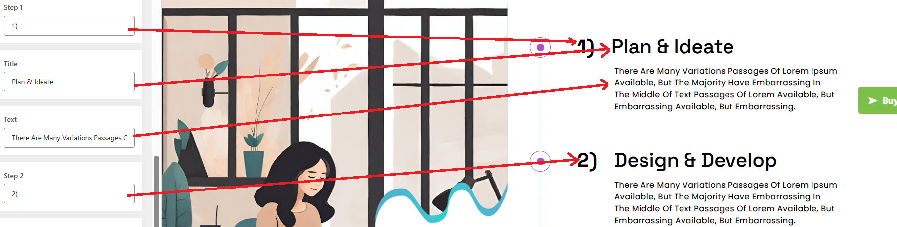 Depending on the available options in each area, you can change the color scheme for the headings, title/text, paragraphs, button text, and button background.
