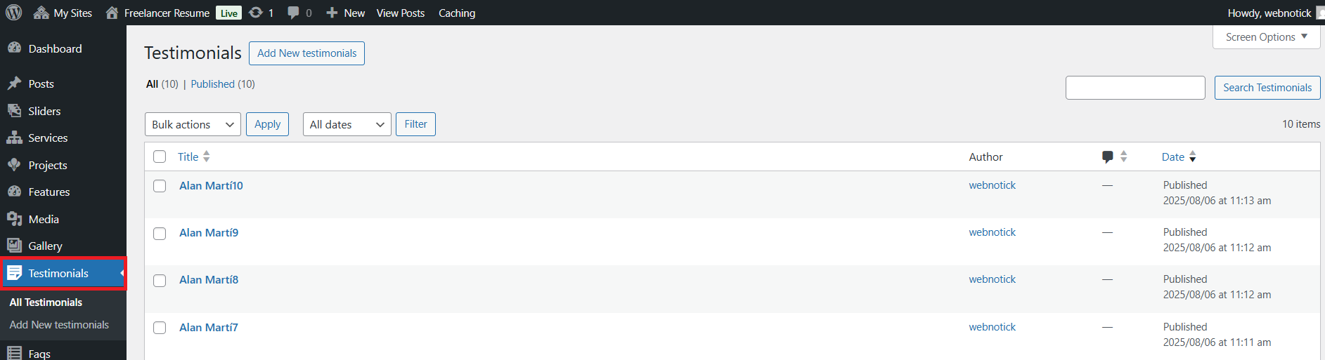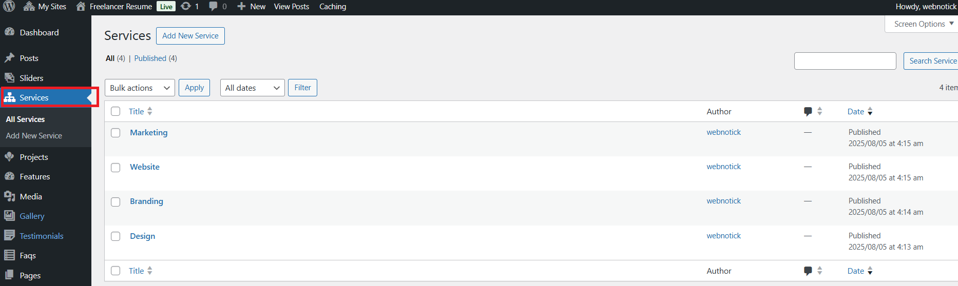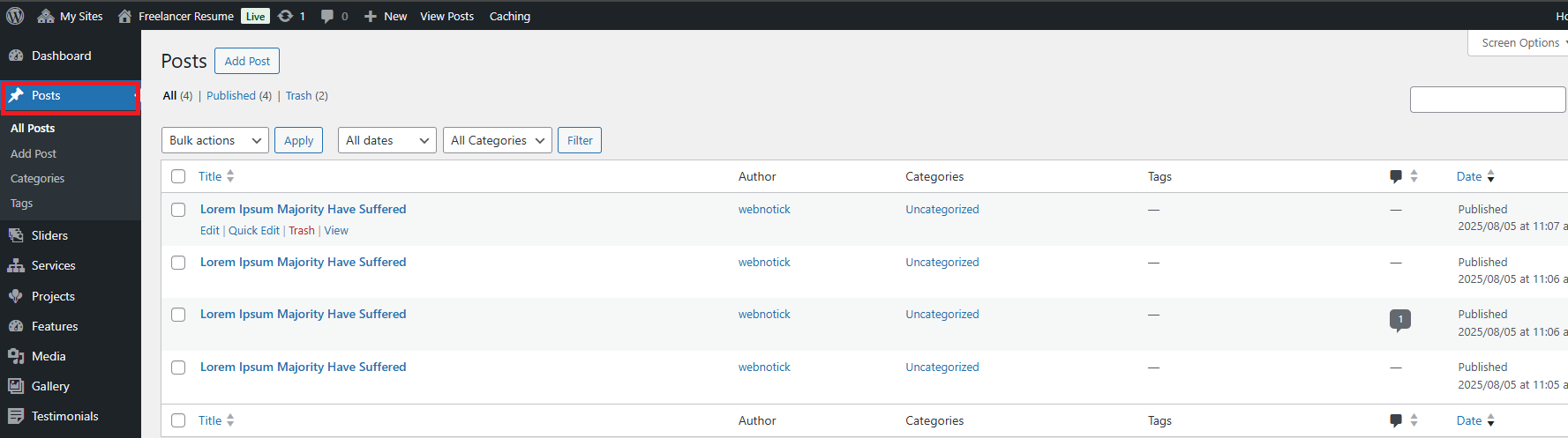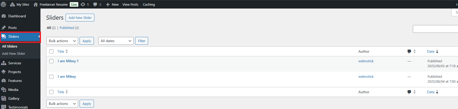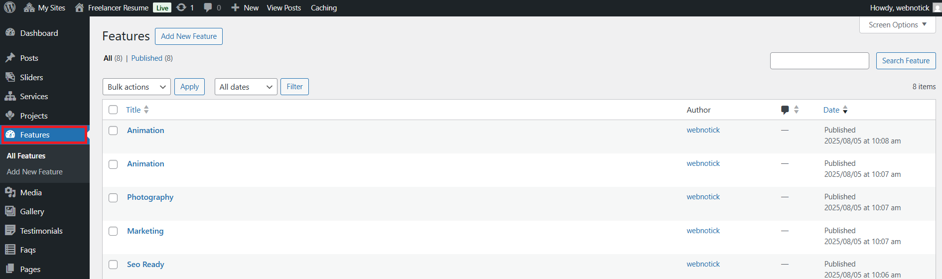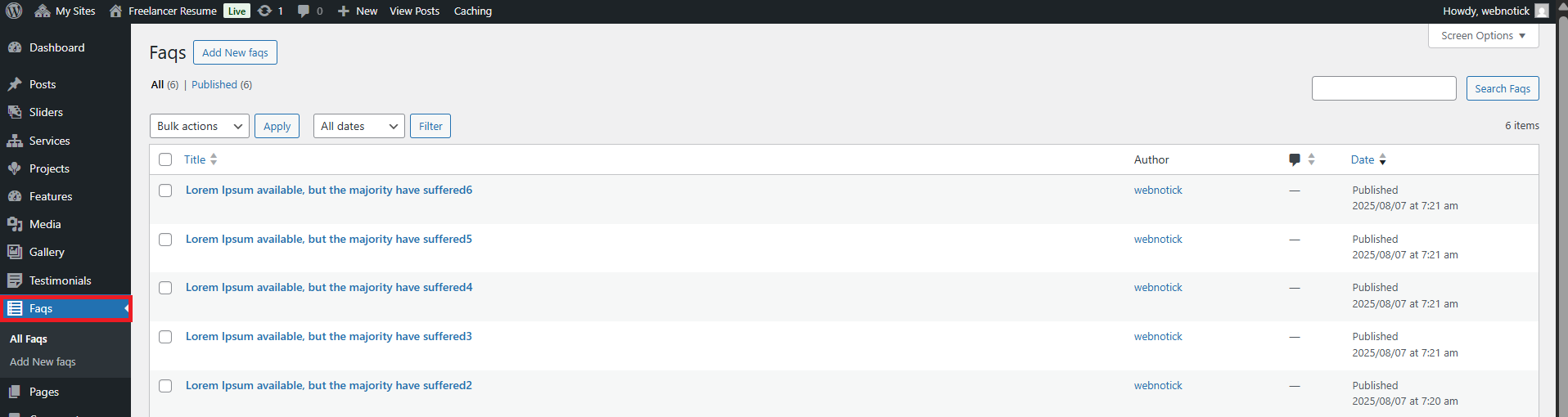 5. If you are not able to see the posttypes then you have to manually active the "Freelancer Resume Pro Posttypes" by going in to the plugins option.