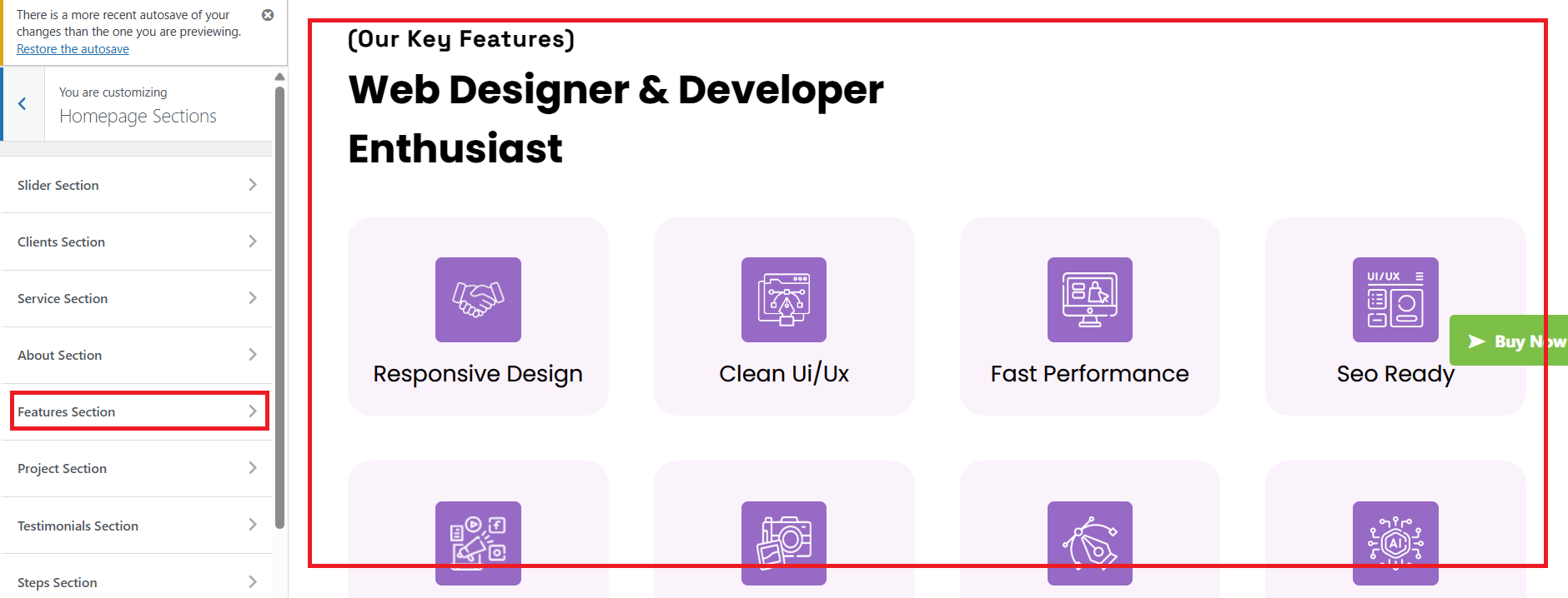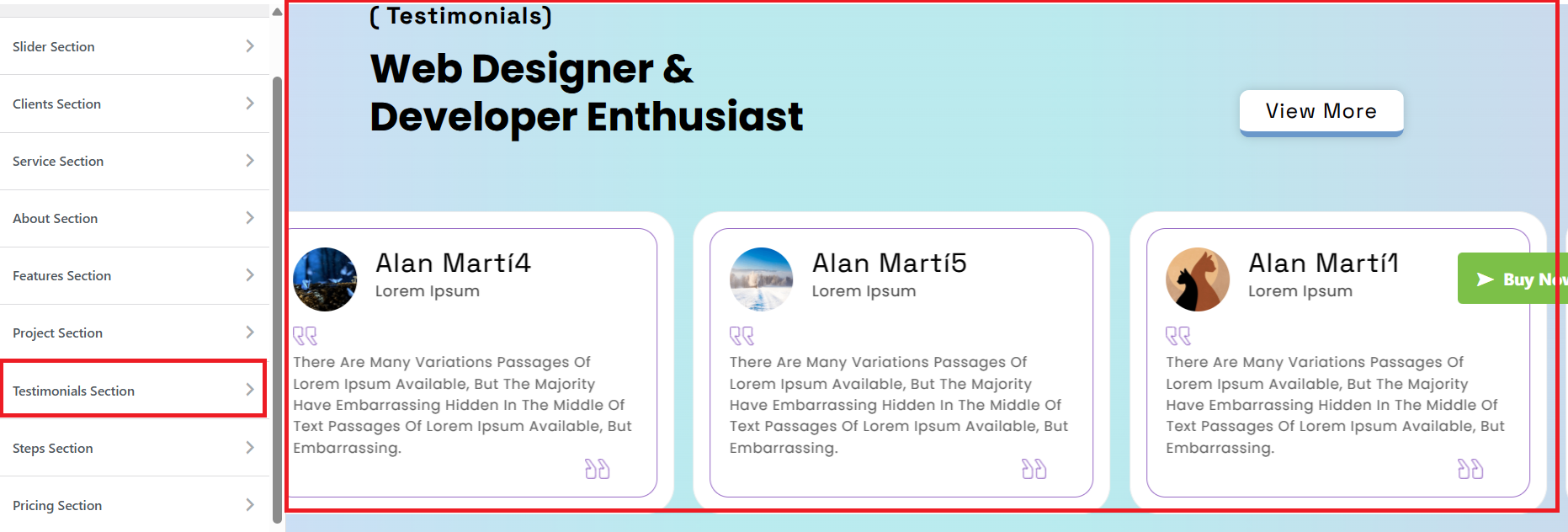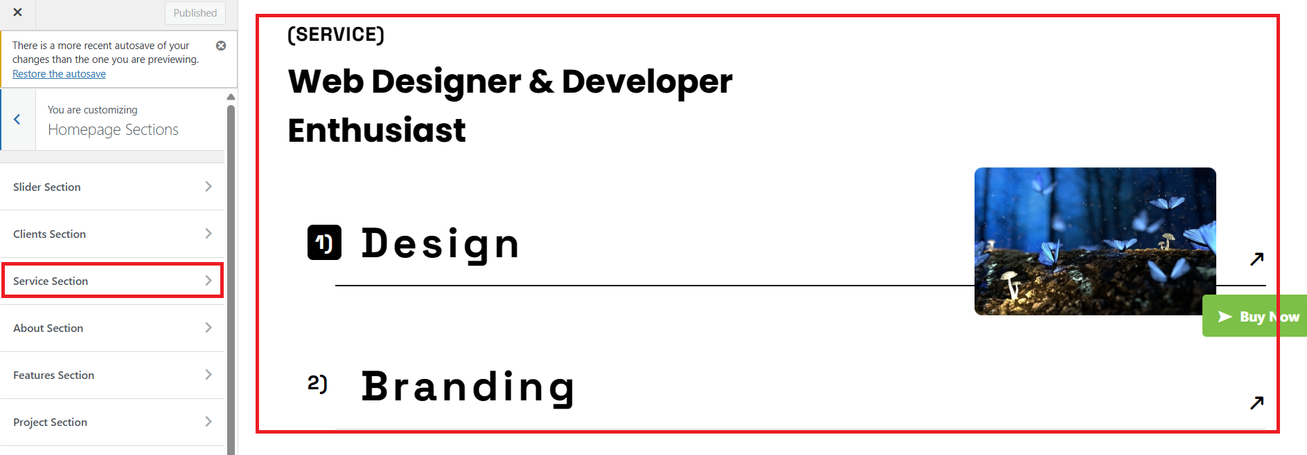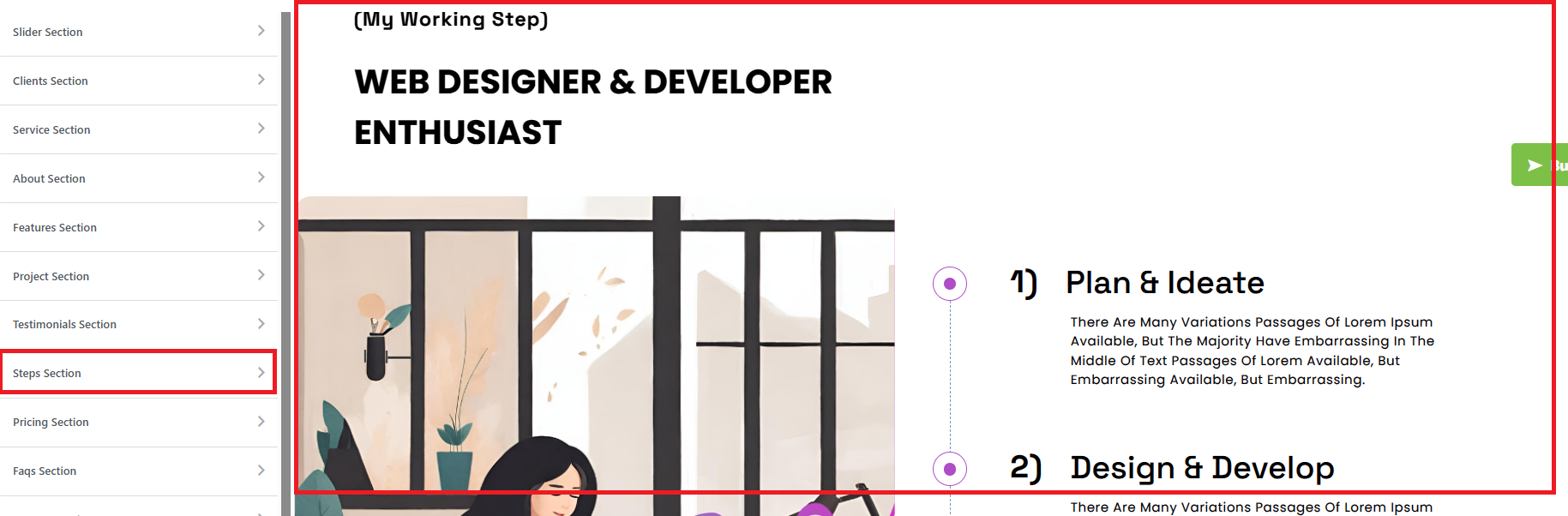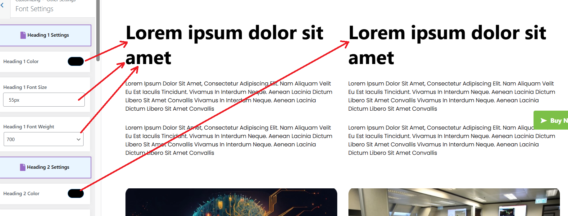 The method of changing the color or font is quite simple. You can easily change the color and font of headings (h1, h2, ... h6), paragraphs (p), and buttons with just a few clicks.