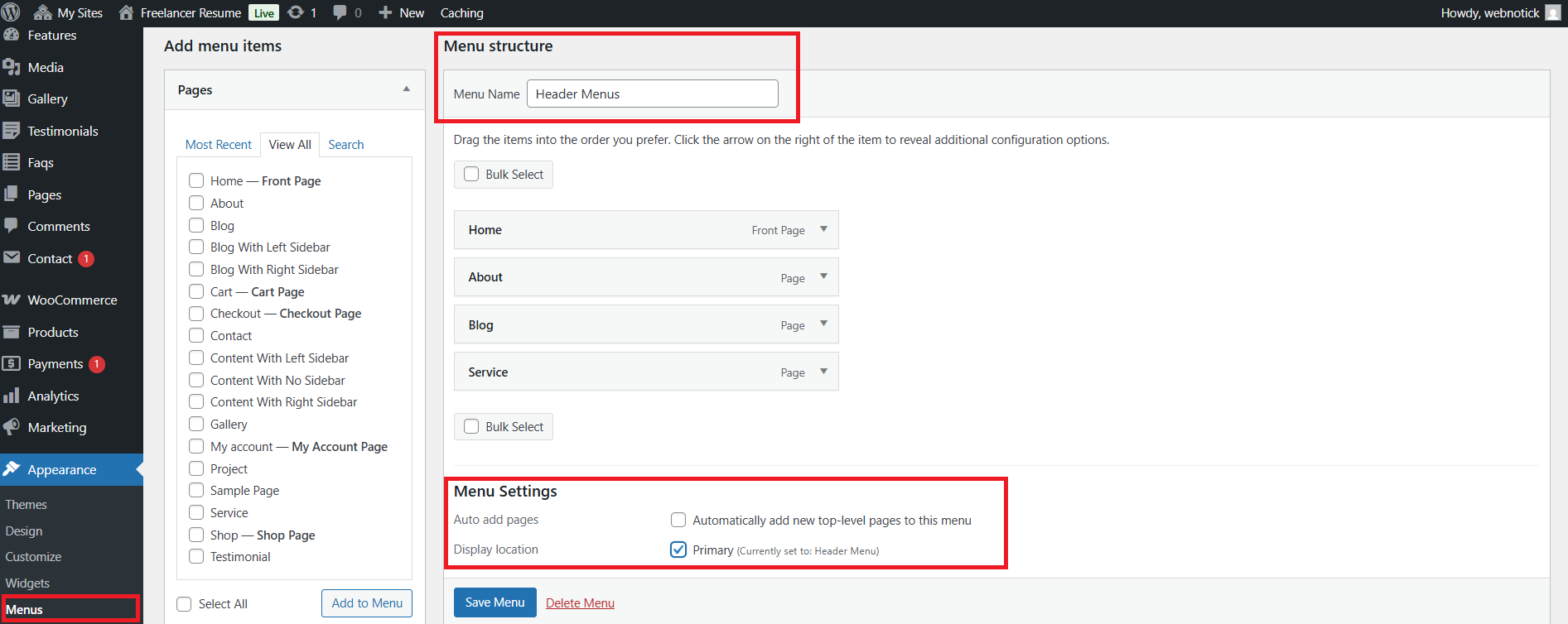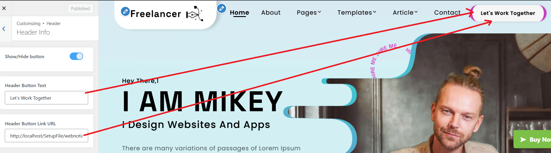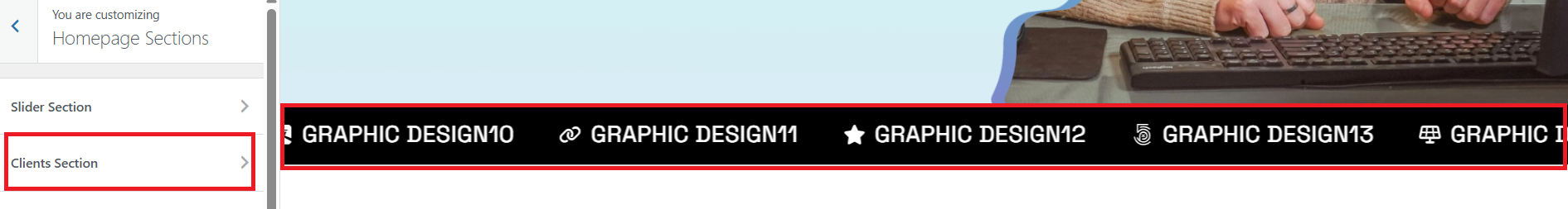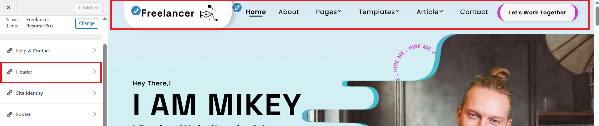 Select Header Section Settings from Go to Appearance then select Customize and then