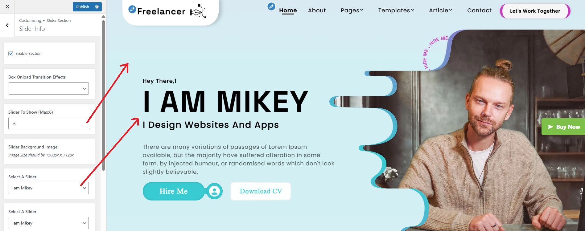 Select slider Section Settings from Go to Appearance then select Customize and then