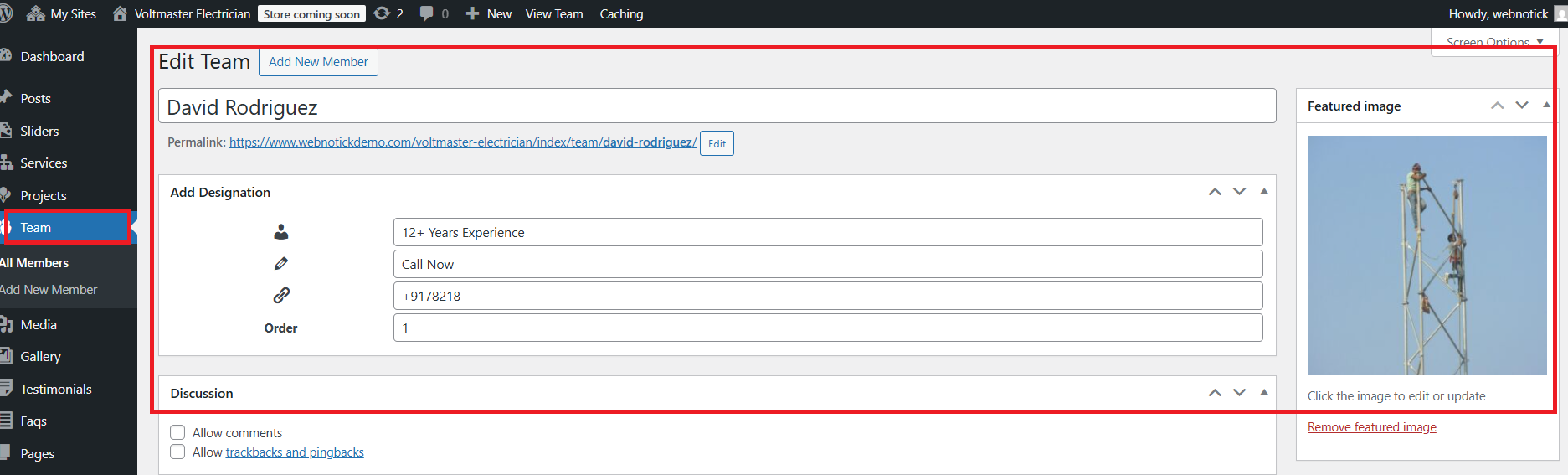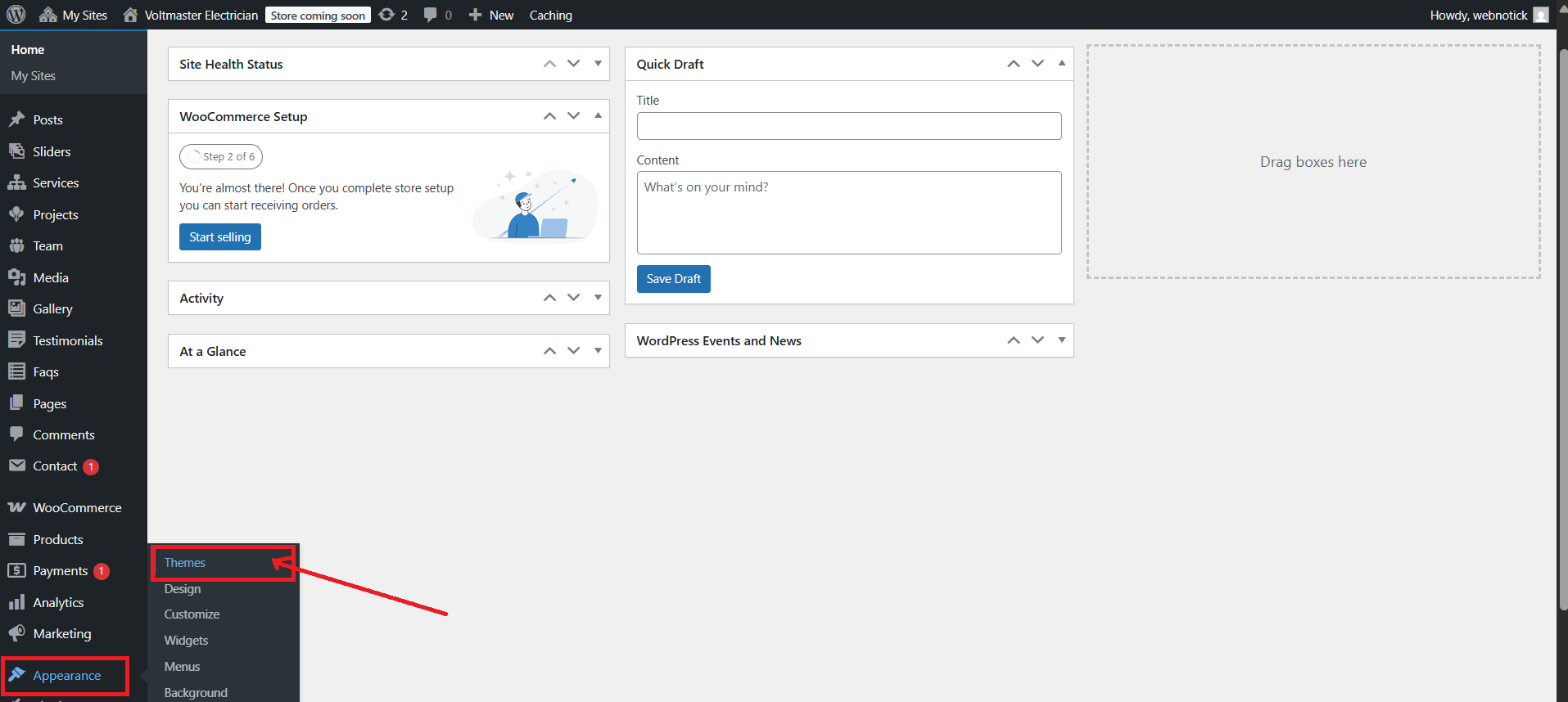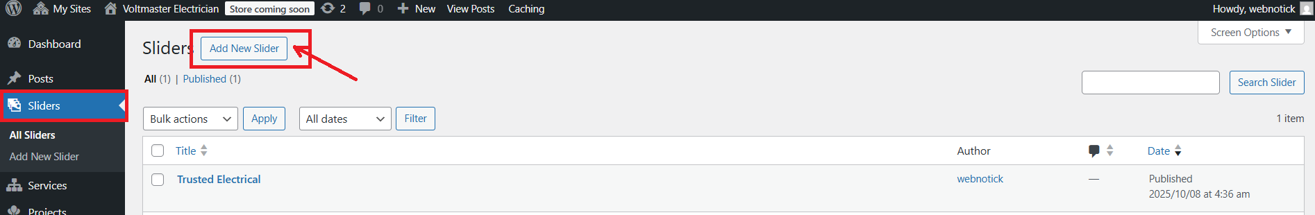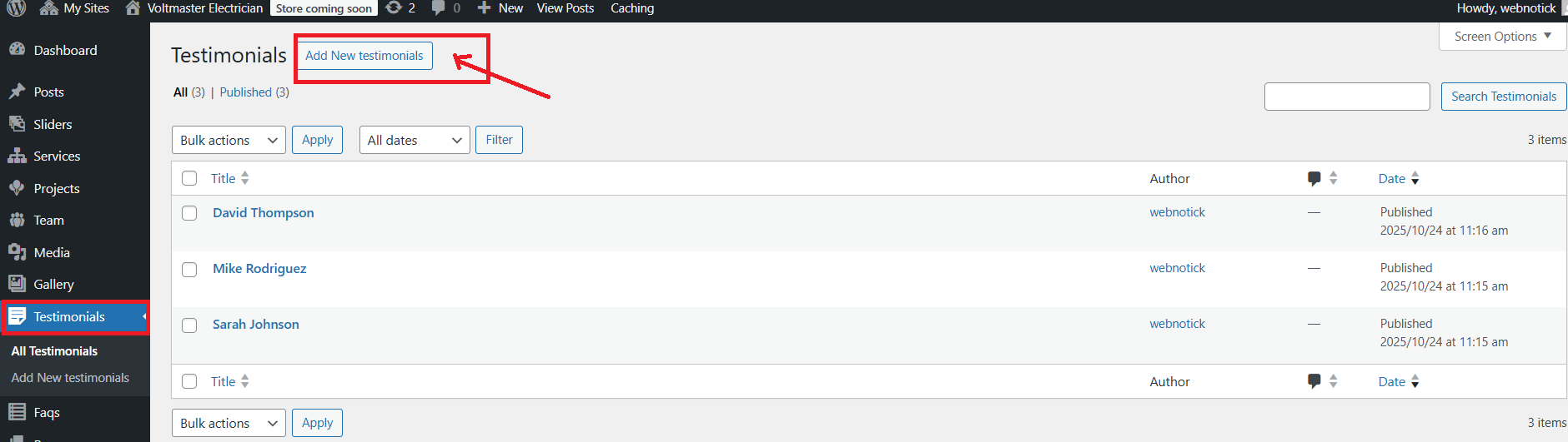 5. If you are not able to see the posttypes then you have to manually active the "Voltmaster Electrician Posttypes" by going in to the plugins option.