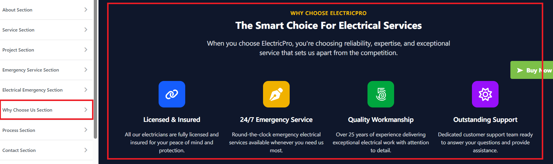 Voltmaster Electrician features a purpose-driven design that puts your services front and center. The clean and engaging layout ensures that visitors are immediately drawn to your projects, services, and opportunities.